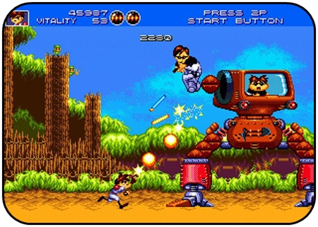 You’re right at home here if you enjoy the Metal Slug games. You don’t get any tanks to control but there’s a mine-cart level (all the rage back then) and a spaceship level, which is a bit cack until you get used to the controls. Gunstar Heroes has one big advantage over the Metal Slug games though, a health counter for bosses.