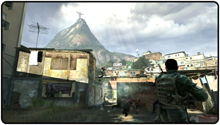 We’ll start with the single player campaign. It begins five years after the last game, with a new threat from Eastern Europe in Makarov who wants revenge for the death of the nuke-dropping Zakhaev, by starting World War III. The story dashes around the globe between missions, sometimes making it difficult to keep up with which character you’re playing as. The locations include Afghanistan, snowy tundras, oil rigs, Rio, and America. The American side of the game borrows from the old Patrick Swayze cult-hit, Red Dawn and rejected ideas for 24 (probably) and are a welcome change from Generistan.