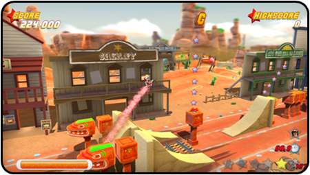 Events in the career mode are bought with gold stars earned throughout. Simple objectives could be getting a gold score, collecting coins or winning a race. There are usually a wealth of extra tasks though too that reward you a star for successful completion. These could include beating a time limit, landing on all targets, collecting all ministars, collecting letters Tony Hawk-style to spell out DANGER, finding hidden objects or maintaining a combo throughout the whole level. Things get more interesting when you have to combine some of these tasks into one for a star, such as landing on all targets inside of a time limit.