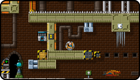 While some levels have checkpoint beacons to bring you back to life they’re annoying absent for some levels meaning one slip-up can mean a restart. There are also a few levels where you can trap yourself into a corner leaving you with the grim prospect of restarting the level. When you do trap yourself though you’ll be able to avoid making the same mistake as before as it’s often clear how you messed up.