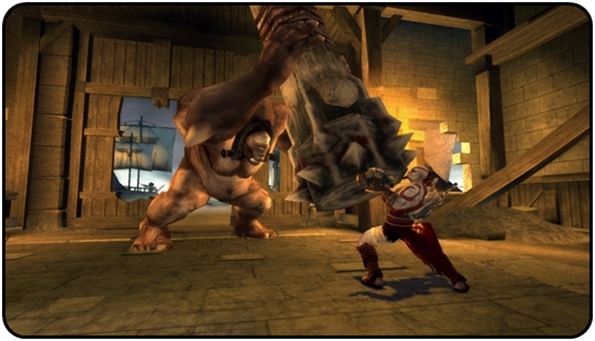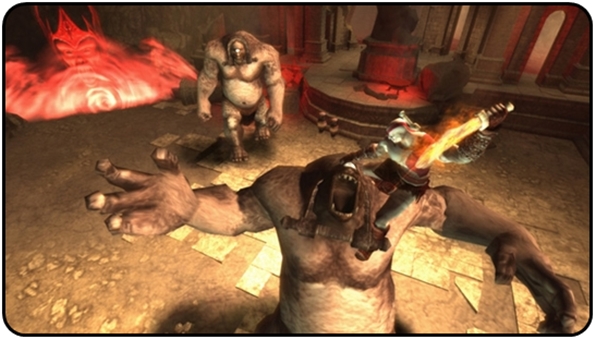The combat survives the transition to the PSP extremely well. The lack of a second analogue stick means the evasive rolls are now performed by holding the L and R shoulder buttons and tapping the analogue nub. The series has always managed well with using fixed camera angles and on the PSP it makes life especially easier. The only time it becomes an issue is against some of the larger foes that can block your view of Kratos. A quick roll and a flurry of the Blades of Chaos will put him back on the map though.