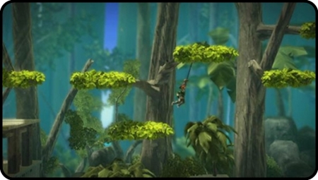 The levels on display showed off the well-designed, varying environments of jungles, snow pummelled power-stations and Mediterranean-esque small town docks. All of which were packed with platforms to swing around on, with many a treacherous hole below. While the levels I played were traditional left to right side-scrollers, there were plenty of little areas to try and climb to, to find enhancement items.