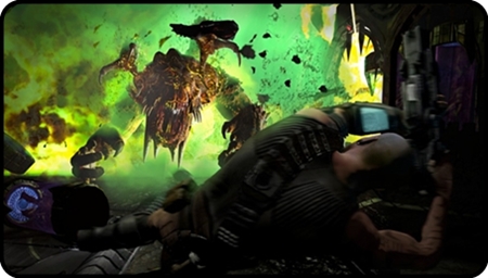The aliens might have a bit of a Dead Space look to them, as does the darker, claustrophobic setting, but seeing as they generally go down easily the comparisons don’t last long. Red Faction: Armageddon is maintaining a heavy action vibe in place of any leanings towards survival horror. Your weapons will cut through most aliens so easily they’re not scaring anyone to be honest.