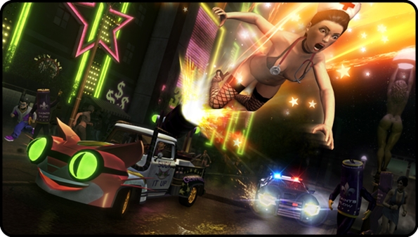 Since Saints Row 2 surprised us all by being a hell of a lot better than the original and for many, a more enjoyable game than GTAIV, we’ve been waiting to see how the next game would handle the pressure. Well, just remember it was a bit bonkers before and it’s not prepared to put its pants back on quite yet.