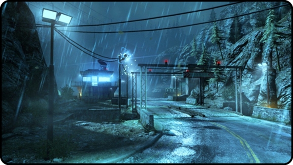 At Gamescom I managed to get a hand-on with a stealth heavy level in a winter forest. After a bit of creeping around towards a secret military base Bond looks on as the storm clouds are pierced with a beam of light. Which we’ll presume is a test of the Goldeneye device, which emits an EMP blast that kills all electrical devices. Either that or there are a lot of drunk pilots in the sky as a fighter jet screams overhead and straight into a bridge, closely followed by a helicopter that explodes into the trees nearby, knocking Bond out.