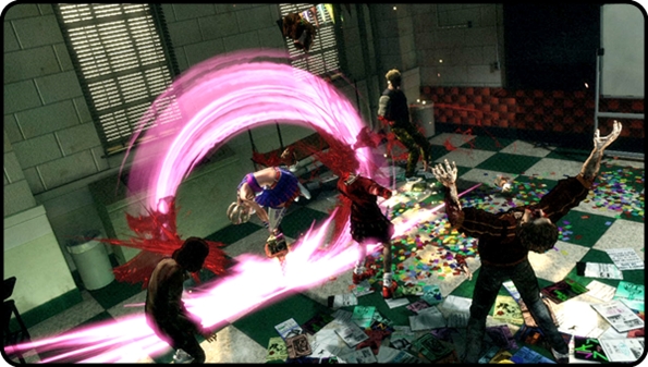 Colourful flashes and explosions of love hearts surround almost every attack. It’s like the game is bursting straight out a teenage girls MySpace page and makes Dead Rising look a bit lame in the process despite the higher zombie count and weapon customisation. Skip towards the last third of the announcement trailer to see the combat in action.
