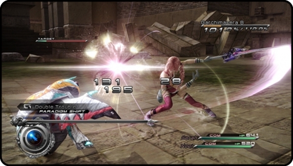 The action kick off with you first encounter against the recurring boss, which at first appears to be a giant floating hand, until the full Atlas monster is revealed. Initially, the combat is very similar to XIII(groan). Admittedly, the combat wasn’t as much of an issue to some as the blatant linearity of that game. I was dismayed to see the return of the bastard Stagger bar though, where you have to fill it up (while it depletes over time) to temporarily break an enemy’s armour and whale in with the attacks. So yes, the Paradigm class changes are still there too. Unfortunately, no editing of these (or any stats screens for that matter) was available in the demo.