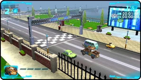An entertaining opening cutscene aside, the story is told via text on dull static screens. Plenty of cars from the movies are unlocked as you progress, but seeing as they all have inferior stats to Lightning McQueen, who is available from the start, they’re not worth bothering with.