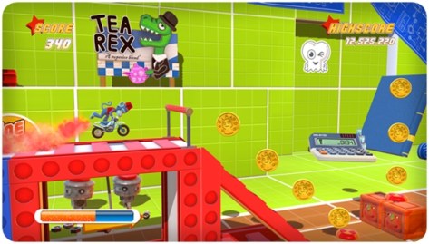 The Lab is not a place newbies should attempt before putting a few hours into the main missions first. Old hands will relish the challenge of avoiding spikes, mousetraps, skull-splintering springs and more, as all of Joe’s skills are tested. Ducking, backwards wheelies, double jumps and horizontal mid-air boosting through spike tunnels are all included to nightmarish proportions.