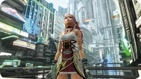 The structure of the game is thankfully much more open than FFXIII’s A-B corridors and you often have a choice of which location to visit next. Revisiting locations at different points in time is the main feature of XIII-2. Yes, this does mean quite a lot of recycled scenery, as even 100 years often has little impact. On a few occasions though, I was genuinely surprised and awestruck at the differences. Adding snowfall to one stage looked great, as even the characters got a realistic dusting. Revisiting a previously night-only futuristic metropolis during the day had me gawping around for ages, just turning the camera round and taking it all in.