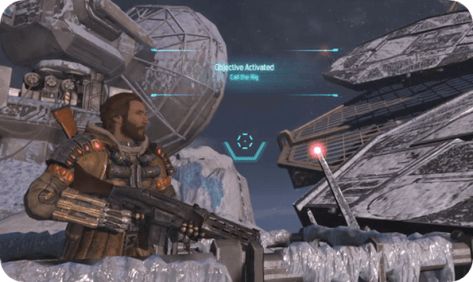 You are Jim, red-haired (finally!) and awesomely bearded-up for the cold. Jim has a wife and newborn son back on earth, but he’s taken this job on the frozen rock of E.D.N. III to earn some serious money as a Rig operator / go-to guy for exterminating the pesky Akrid wildlife while the NEVEC Corporation searches the planet for T-Energy.