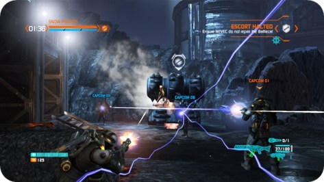 Game modes are what you’d expect with team deathmatches, extraction and base defences on offer. There’s also a 3vs3 survival mode where two teams take on waves of Akrid before fighting over a base in the middle. It’s all so very average, perhaps a standard survival mode would have fared better as it’s the nearest the game gets to co-op this time around. Technically, it’s a bit of a mess too, I was frequently teleported around the arena and a few of the bridges cause you to fall endlessly from the game world.