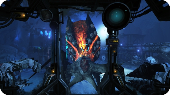 Ok, so back to actually playing the game. Outside of the rig, on-foot sections feel similar to past titles. Here you’re thankfully given some weapons rather than a spanner and a ‘deal with it’ hashtag. If you’ve played any other Lost Planet games, you’ll know what to expect, lots of aliens with glowing orange parts as their weak spot. Weapons are nothing to write home about, regular assault rifles, shotguns, slow rifles, grenades and the like. They can be upgraded with larger magazines and extra damage at least.