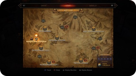 Before diving into Rifts, you’ll need to complete a few bounties. Access the map, choose an act and then visit any of the locations with an exclamation mark. These quests task you with killing a mini-boss at the end or finding an item. If you finish five bounties in one continuous session, you may be in line to receive a bonus in the form of a bag full of loot and gems and a large haul of XP, usually a few million, which you’ll need on your way to Lv. 70 so you can start playing around with Paragon stats.